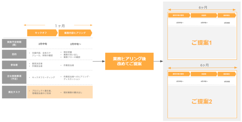 その後、分析を行い、最適な提案と料金体系の制作工程に入ります。
